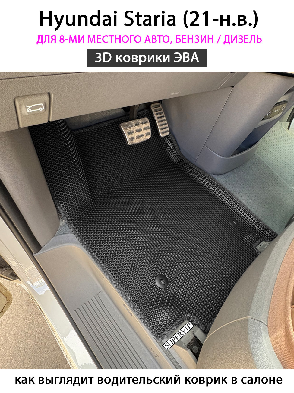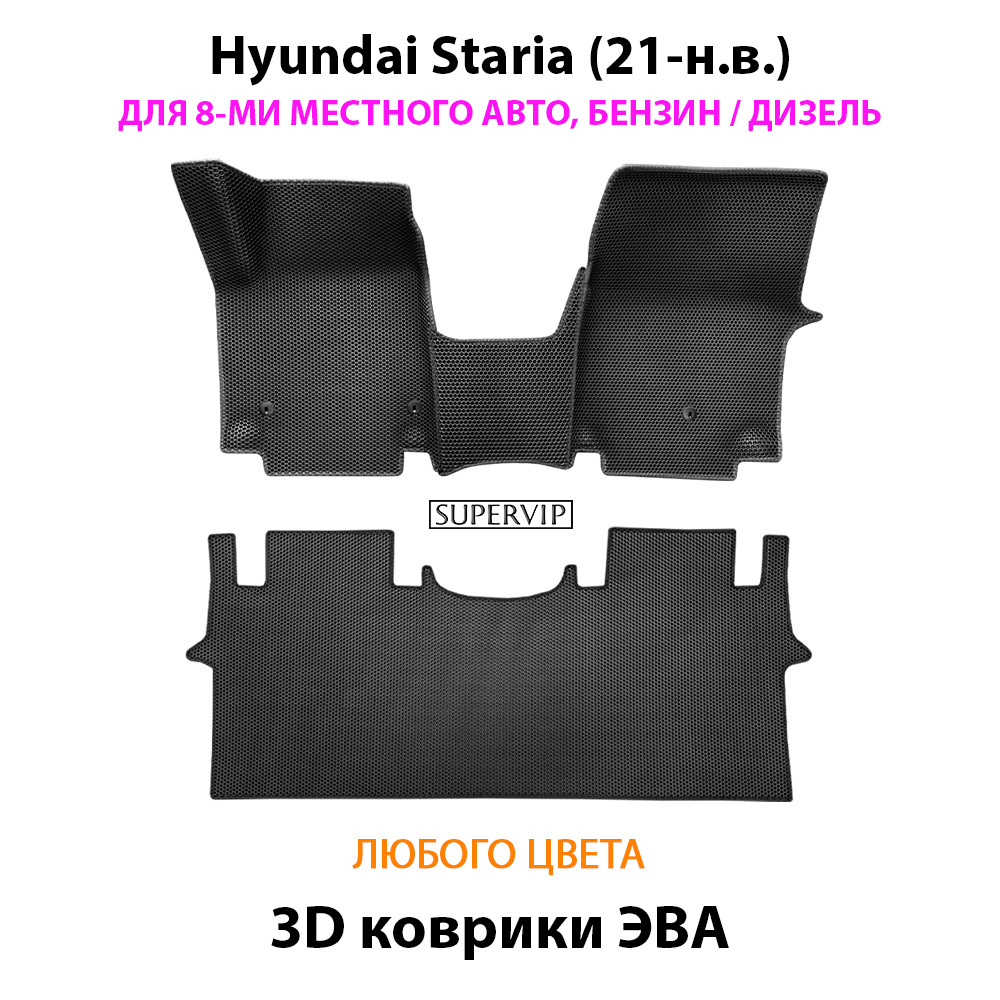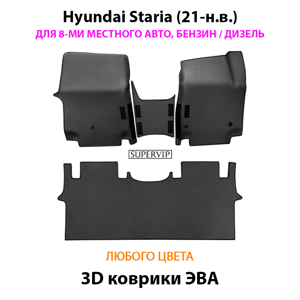 Комплект 3D ковриков ЭВА в салон авто для Hyundai Staria (2021 г. - по настоящее время) на 8-ми местное авто, бензин / дизель.