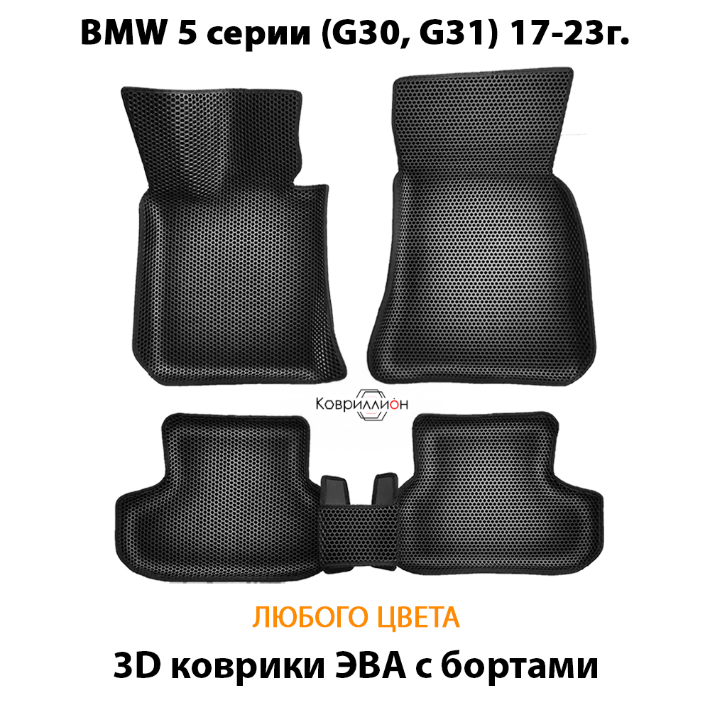 Комплект 3D ковриков ЭВА с бортами в салон авто для BMW 5 серии VII (G30/ G31) 2017-2023 года.