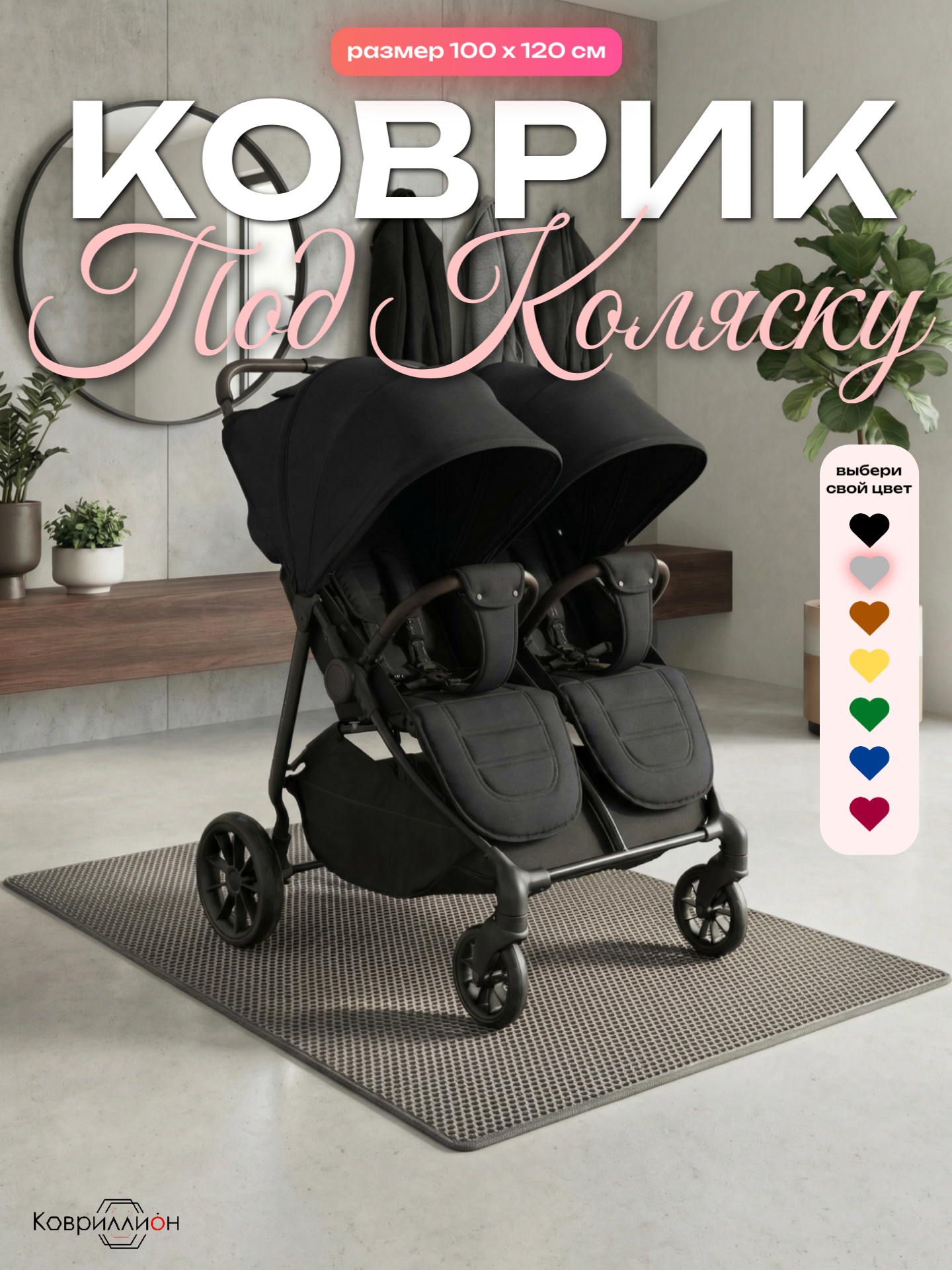 Коврик ЭВА под детскую коляску для близнецов, 100х120 см