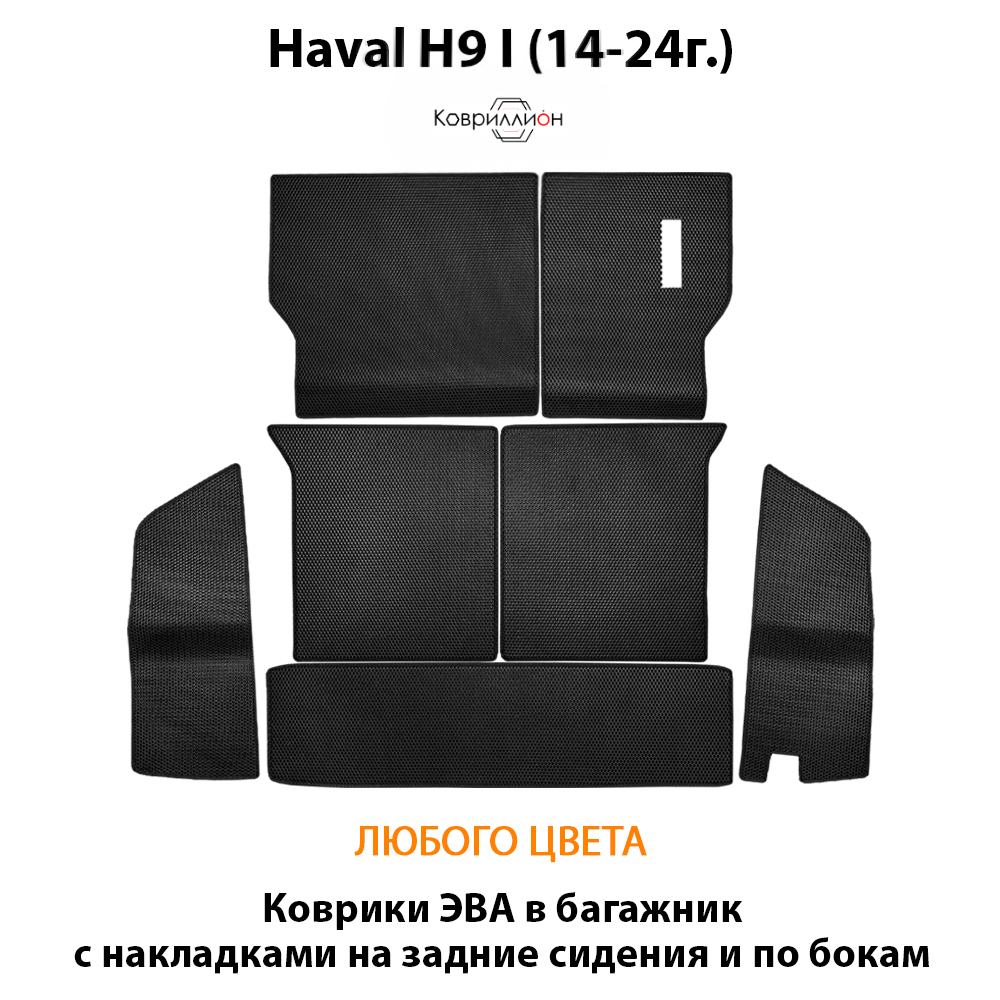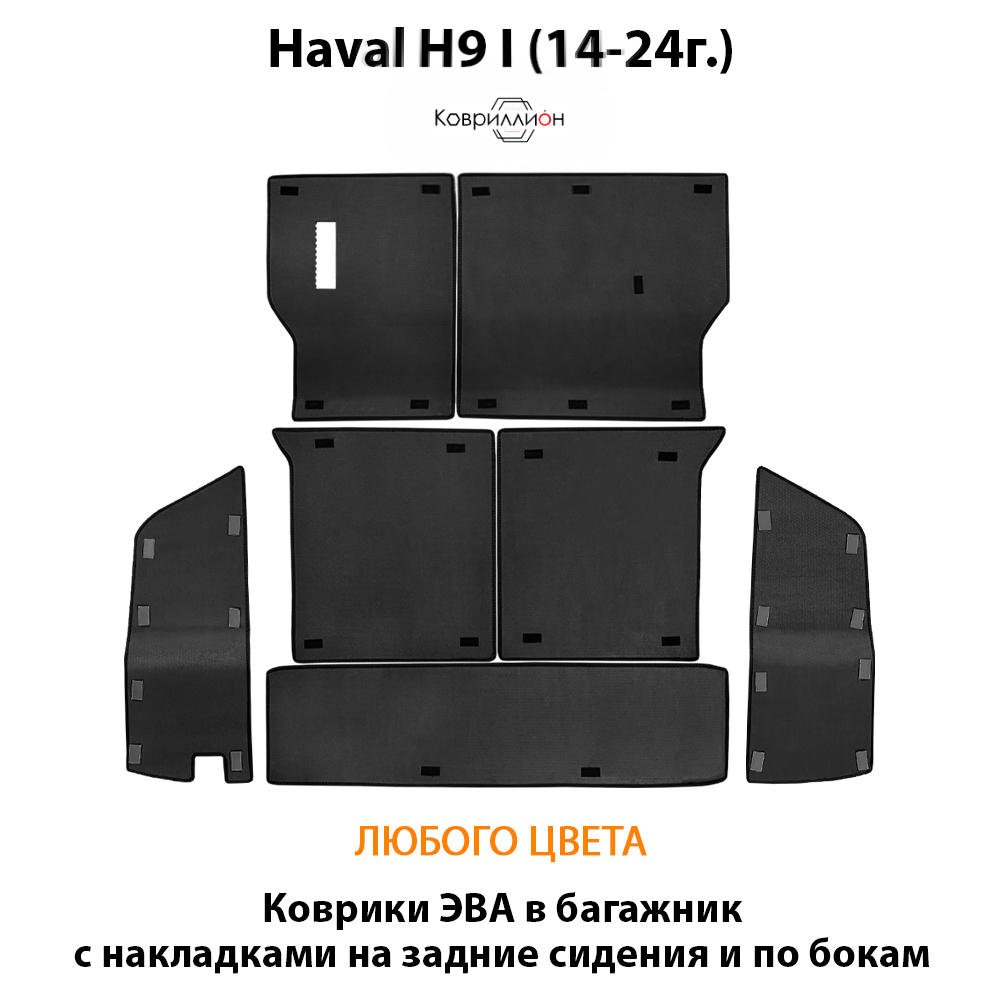 Коврики ЭВА для багажника с накладками на задние сидения и боковые стенки для Haval H9 I (2014-2024 года).