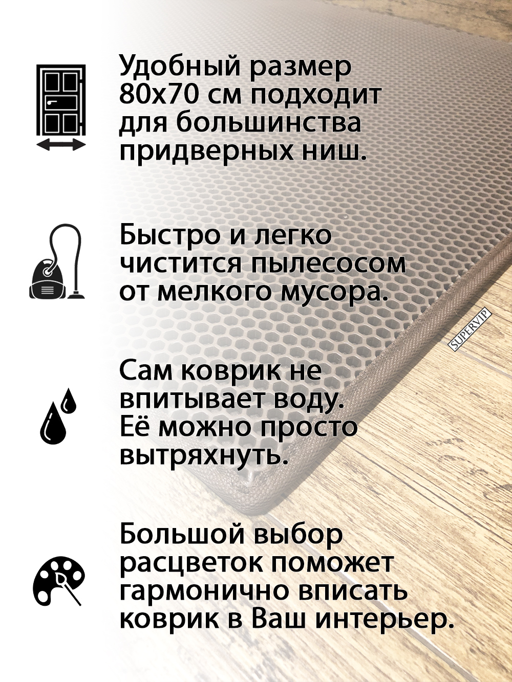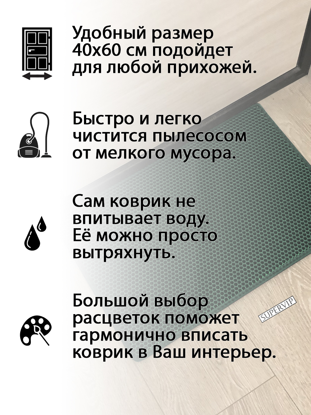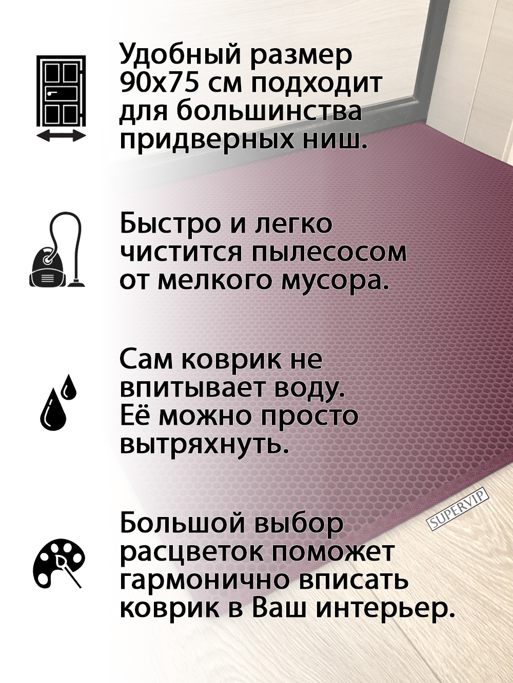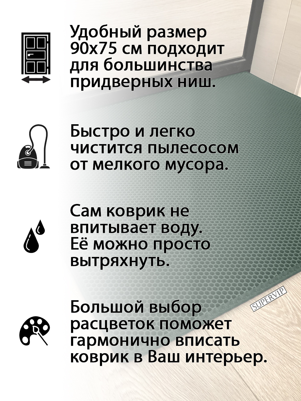 SUPERVIP - российский производитель домашних и автомобильных ковриков ЭВА любого цвета и размера.