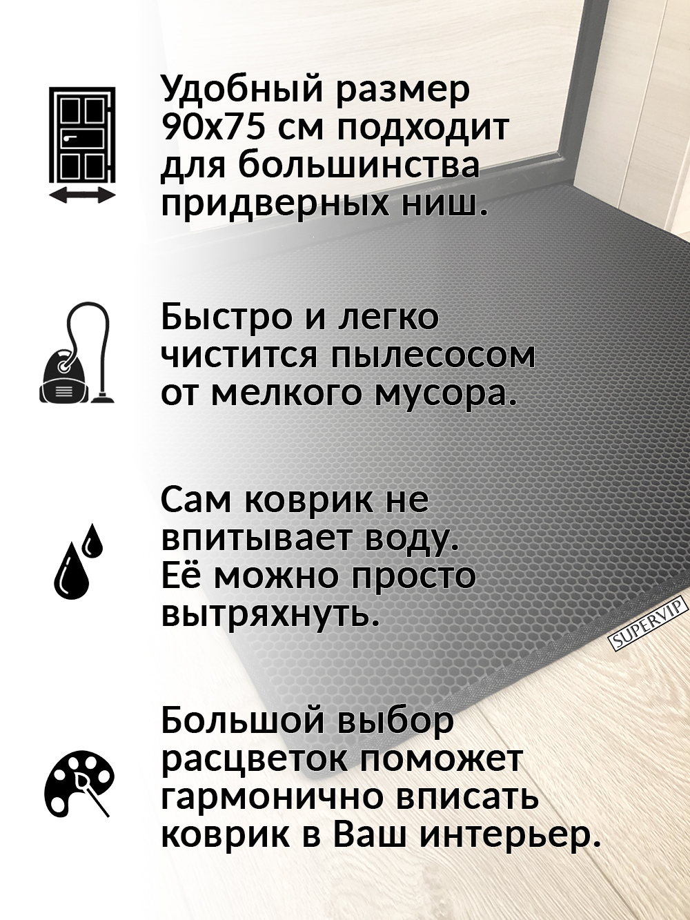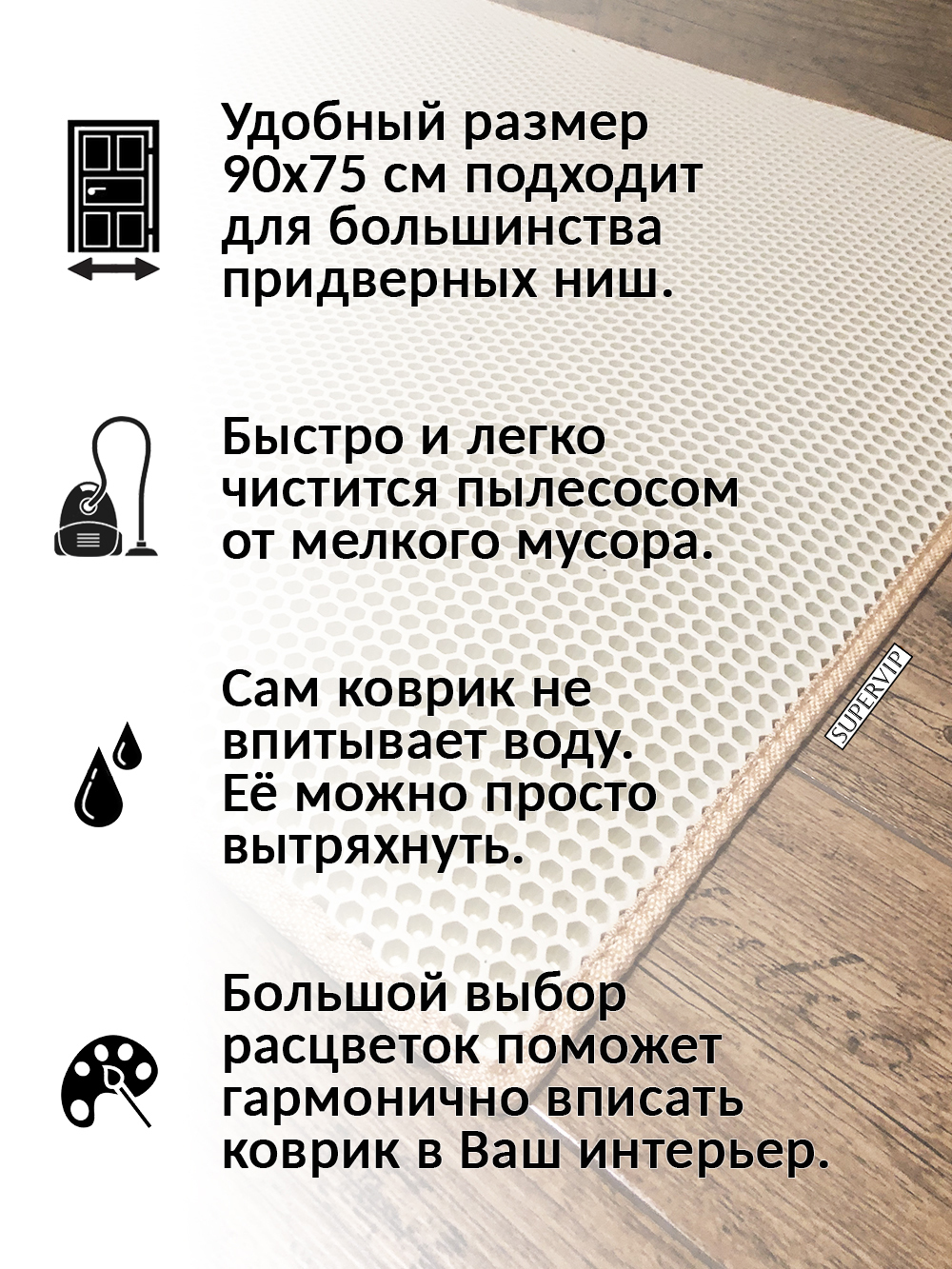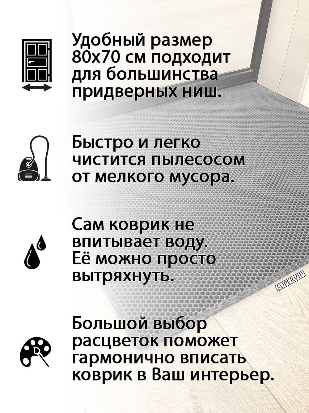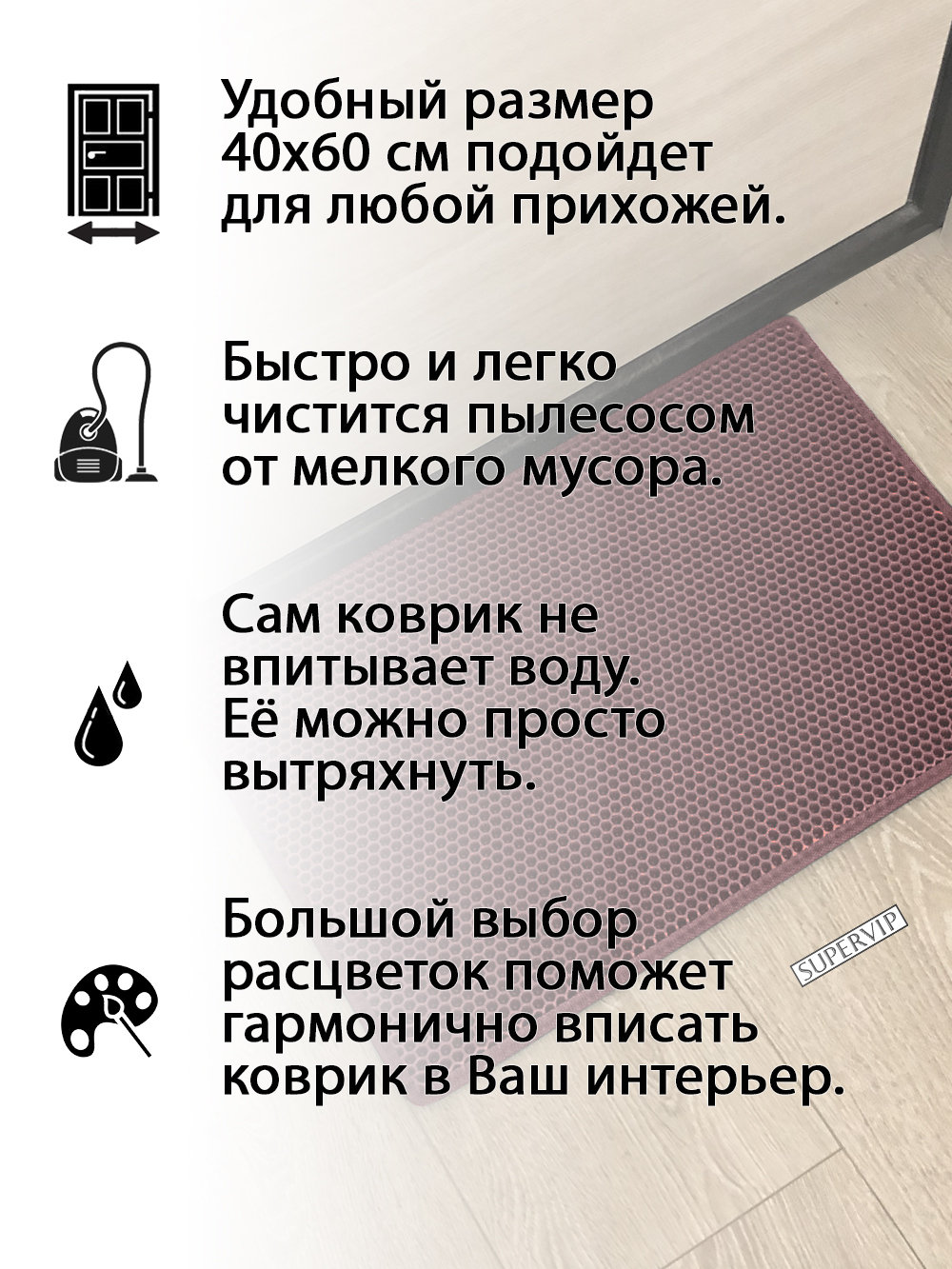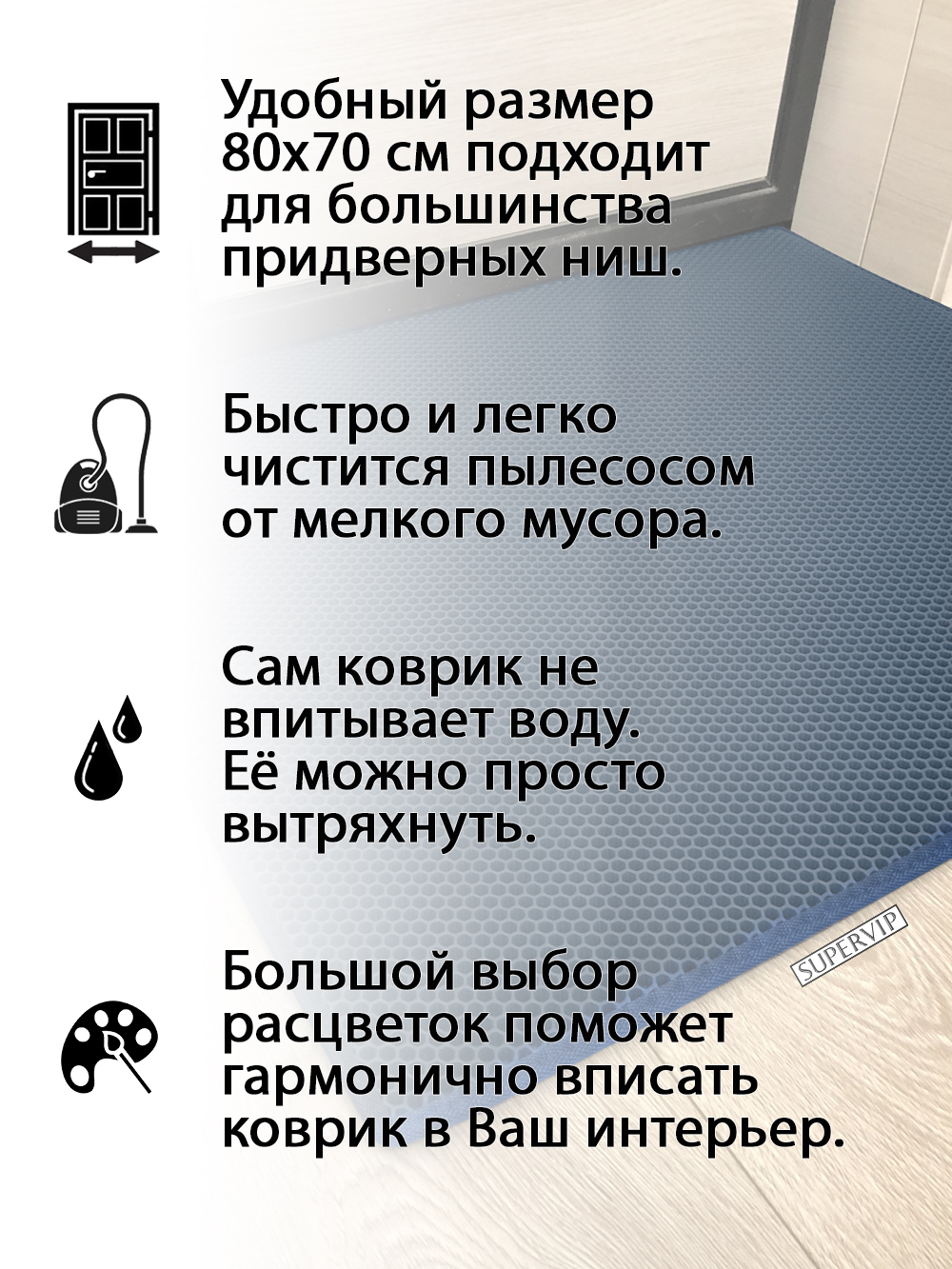 SUPERVIP - российский производитель домашних и автомобильных ковриков ЭВА любого цвета и размера.