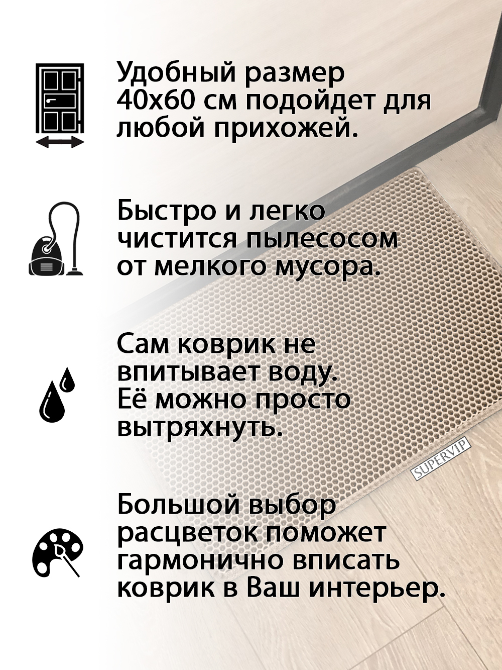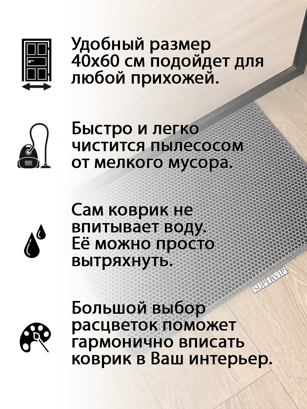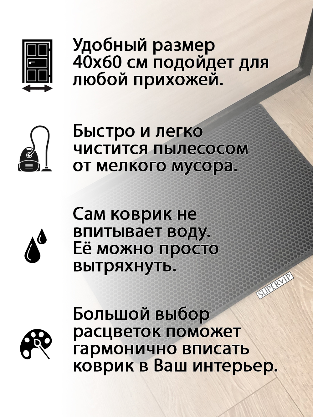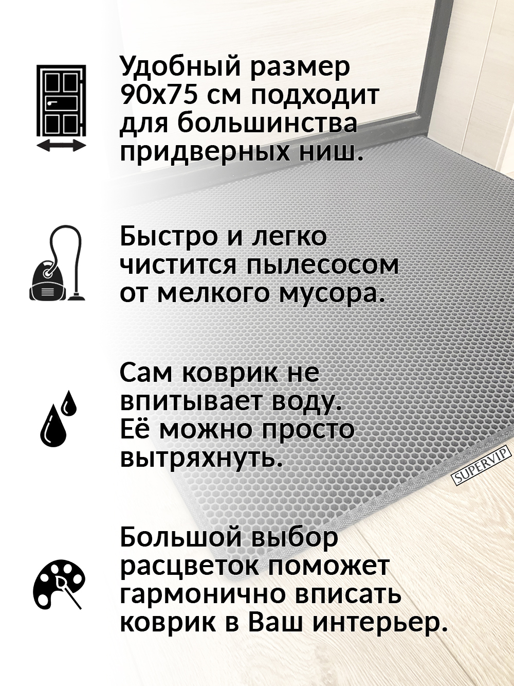 SUPERVIP - российский производитель домашних и автомобильных ковриков ЭВА любого цвета и размера.